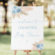 Welcome your party guests with an adorable personalized sign. This elegant design features hand painted watercolor florals in dusty blue and neutral tones.