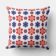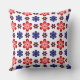 This 20” x 20” throw pillow features a beautiful colorful floral pattern of blue, purple and red stylized daisies against a white background; perfect for adding a touch of retro cuteness to your home.