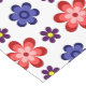 This table runner features a beautiful colorful floral pattern of blue, purple and red stylized daisies against a white background; perfect for adding a touch of retro cuteness to your dining room or kitchen.