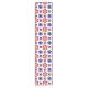 This table runner features a beautiful colorful floral pattern of blue, purple and red stylized daisies against a white background; perfect for adding a touch of retro cuteness to your dining room or kitchen.