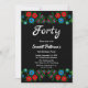 Boho Blue Red Roses Romantic Floral 40th Birthday Invitation