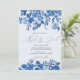 Boho blue rustic hand painted floral wedding invitation