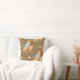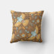 This throw pillow features a pattern of boho style bluebird images, heart, leaf, and flower designs on a deep brown background. Colors used in the images include tan, light blue, and gold. Both sides of the pillow have the same pattern.