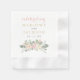 A full-bleed background of lush blush, pink, and gold watercolor florals with greenery frames the couple's monogram names and date in elegant calligraphy on these bohemian wedding napkins. The rich, romantic botanical design creates a stunning accent for a garden wedding reception, boho bridal shower, or outdoor engagement party.
