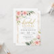 Boho blush pink floral gold frame bridal shower invitation