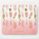 Boho Blush Pink & Gold Feathers Ombre Personalized Mouse Pad