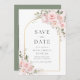 Boho Blush Pink Rose Floral Sage Green Gold Arch Elegant Wedding Save The Date Invitation.