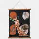 Wood topped wall tapestry Bohemian style, modern Boho art with Giraffe and abstract art. The design features Earth tones and Giraffe on a palette of Boho colours & background. The Boho palette colors used here are dark mud brown, soft green, biege, black and earthtone grey. Magnificent home decor tapestry with vivid Bohemian colours to brighten your walls for any occasion.