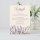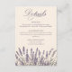 This elegant simple floral monogrammed wedding details card features a delicate lavender flowers drawing with warm background. Personalize this beautiful wedding details card with your own text and QR code.