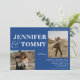 Boho bold names 3 photos wedding chic blue invitation