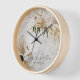 This stylish and modern boho/bohemian wall clock features botanical and flowers in watercolor with family name and established year. Personalize it for your needs. You can find matching products at my store.