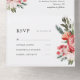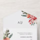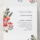 Chic boho bouquet with red roses all in one wedding invitation featuring a classic monogram.