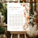 Guide your guests in style with this boho bright elegant simple modern terracotta wedding seating chart sign. Featuring beautiful calligraphy, minimalist typography, and terracotta floral accents, this seating chart adds a stylish and functional element to your special day. Perfect for fall weddings, this modern burnt orange and eucalyptus design helps your favorite people easily find their seats. Whether for rustic, boho, or elegant wedding themes, this seating chart blends sophistication with simplicity. Ideal for invitations & stationery, crafts & party supplies, this bold and bright seating guide makes a statement at any event.