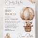 Boho Brown Teddy Bear Hot Air Balloon Baby Shower All In One Invitation