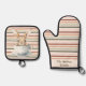 Boho Bunny Cup Striped Custom Oven Mitt & Pot Holder Set