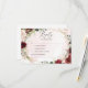 Popular now design for boho Wedding Rsvp features deep red marsala flowers roses mixed fresh eucalyptus greenery foliage and woven into faux gold frame . Hand drawing script lettering.