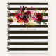 This stylish, beautiful notebook features trendy marsala burgundy colored flowers with modern black and white stripes.