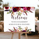 Bohemian style Welcome Engagement Sign featuring watercolor illustration of burgundy, red and pink peonies and roses with feathers accent. This is perfect for autumn | fall and winter events. Please click the "Customize" button to change fonts, sizes and colors. Matching items are also available.