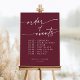 This boho burgundy red order of events wedding sign is perfect for a minimalist wedding. The dark maroon wine red modern bohemian design features simple rustic calligraphy with a unique yet classic style. Perfect for any season: spring, summer, fall autumn or winter.