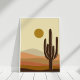 The Boho Burnt Orange Desert Landscape Poster featuring sunrise, hills, desert, and cactus is perfect for bohemian homes.