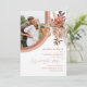 These dreamy boho wedding save the date cards, are perfect for a fall wedding. The cards feature a boho theme with shades of burnt orange, terracotta, peach and cream. An elegant display of florals, leaves, pampas grass and a modern wedding invitation template, arches featuring your favorite photo over earthy tones. The font styles, color and size can be changed by clicking the 'edit using design tool' link after personalizing.
