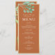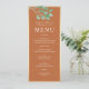 This wedding menu features a rustic yet elegant design, blending boho charm with a botanical touch. Adorned with watercolor eucalyptus greenery and flowing modern calligraphy script, it showcases a terracotta burnt orange palette and gold accents that bring a serene and sophisticated feel to your special day.