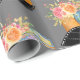 Wrapping paper with a watercolor illustration of an orange camera with a floral bouquet and a black and white wavy film strip.