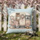 Boho Camper with Floral Wreath & Pastels Pink Throw Pillow