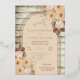 Boho exotic beachy wedding design with rustic faux distressed wood, an arched panel with multiple outer rings for a modern retro feel. Add gorgeous caramel-colored roses and terracotta to dusky brown dried eucalyptus and grasses, and all that is needed is your details to start your wedding experience off in elegant style. All text is in rose gold foil. Composite design by Holiday Hearts Designs.