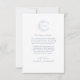 At the center of the card is a crescent moon adorned with delicately intertwined leaves, forming a celestial wreath that encapsulates a monogram. This personalized touch elegantly combines the couple's stylish simple initials, creating a unique and sophisticated emblem that symbolizes the unity and gratitude of two souls connected through a celestial journey.