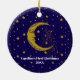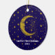 Celebrate their first Christmas with this whimsical Christmas holiday ornament featuring an illustration of a celestial woman sitting on a gold moon surrounded by a blue sky full of yellow stars in a boho style. Great for little boys and girls, travelers, dreamers, astronomers or any nature lover. Personalize it with your name and Christmas year or a short phrase. Great as a birthday or Christmas present for any age!