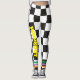 Graphic artwork of checkered pattern in black and white with colorful lines, green, purple and orange with big yellow text Workout.