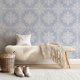Boho Chic Barrett Mandala design in light slate gray is part of a collection featuring several of my hand drawn patterns in multiple colorways. I love the intricate detail of this pattern and the way it appears as tile on the wall. Please let me know if you would like a custom color!