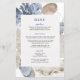 Add a touch of coastal charm to your reception with these ethereal soft blue and neutral beach wedding menu sheets. Featuring watercolor hand-painted shells and corals, these double-sided budget paper menus are perfect for oceanfront, beachfront, beachside, resort, and destination weddings.