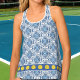 Boho Chic Blue Ikat Pattern Custom Pickleball Tank