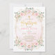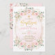Boho Chic Blush Pink Gold Floral Girl Baptism Invitation
