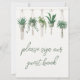Introducing our exclusive guestbook sign, a stunning blend of sophistication and nature-inspired elegance. This sign features a delicate watercolor illustration of a hanging plant, artfully suspended in a chic macramé hanger. The hand-drawn design exudes a sense of breezy sophistication, making it the perfect addition to any modern, stylish event. The soft green hues of the plant, paired with the refined typography, create an effortlessly chic aesthetic that is both timeless and contemporary.