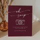 This boho chic burgundy red oh snap wedding hashtag sign is perfect for a minimalist wedding. The dark maroon wine red modern bohemian design features simple rustic calligraphy with a unique yet classic style.