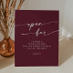 This boho chic burgundy red open bar wedding sign is perfect for a minimalist wedding. The dark maroon wine red modern bohemian design features simple rustic calligraphy with a unique yet classic style.