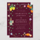 Celebrate your boho chic summer wedding with this beautifully modern watercolor invitation, featuring vibrant hand-painted bohemian botanicals and a refreshing European citrus and wine theme set against a romantic burgundy background.