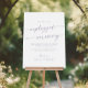 This foam board sign reads: Welcome to our unplugged ceremony kindly turn off your cell phones and cameras to be fully present during our ceremony. We will happily share the photos that are captured today. Thank you.