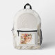 Backpack featuring a painted watercolor illustration of a bohemian lady or your own photo, on an elegant feminine design in soft tan and ivory colors. You can replace the initials with your own or just leave a monogram (or delete altogether).