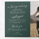 Personalize your wedding program with your initials, names, wedding date and location, your favorite quote or lyric, order of service, wedding party, in loving memory memorial message, unplugged ceremony message, a thank you note and a photo.