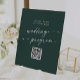 This boho chic emerald green QR code wedding program pedestal sign is perfect for a minimalist wedding. The dark and moody hunter forest green modern bohemian design features simple rustic calligraphy with a unique yet classic style.