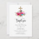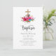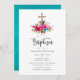 Boho chic pink and turquoise blue watercolor floral baby baptism invitations with handwriting typography designed to be quickly and easily customizable to your event specifics.