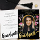 Boho Chic Floral Graduate Photo Arch Script Gold Foil Invitation