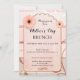 Elegant Mother's Day Brunch invitation featuring a modern terra cotta peach and rose gold design with gerbera daisy flowers. The background is classy striped pattern in chocolate and dream peach colors.