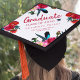 Boho chic floral red navy elegant graduate summer graduation cap topper