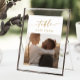 These boho chic gold and white photo table numbers are perfect for a minimalist wedding. The neutral yellow gold and white modern bohemian design features simple rustic calligraphy with a unique yet classic style.