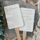 This boho chic gold and white wedding program hand fan is perfect for a minimalist wedding ceremony. The neutral yellow gold and white modern bohemian design features simple rustic calligraphy with a unique yet classic style.